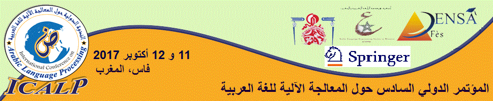 تتشرف اللجنة المنظمة باسم المدرسة الوطنية للعلوم التطبيقية بجامعة سيدي محمد بن عبد الله فاس وجمعية هندسة اللغة العربية في المغرب بدعوتكم للحضور والمساهمة في المؤتمر الدولي السادس حول المعالجة الآلية للغة العربية The 6th International Conference on Arabic Language Processing